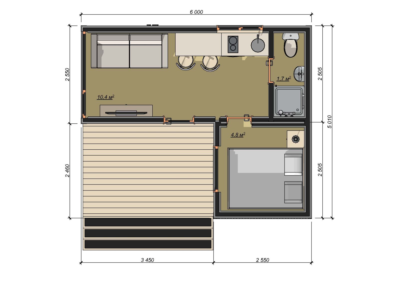 Внешние размеры: 6200х5210х3200 мм.