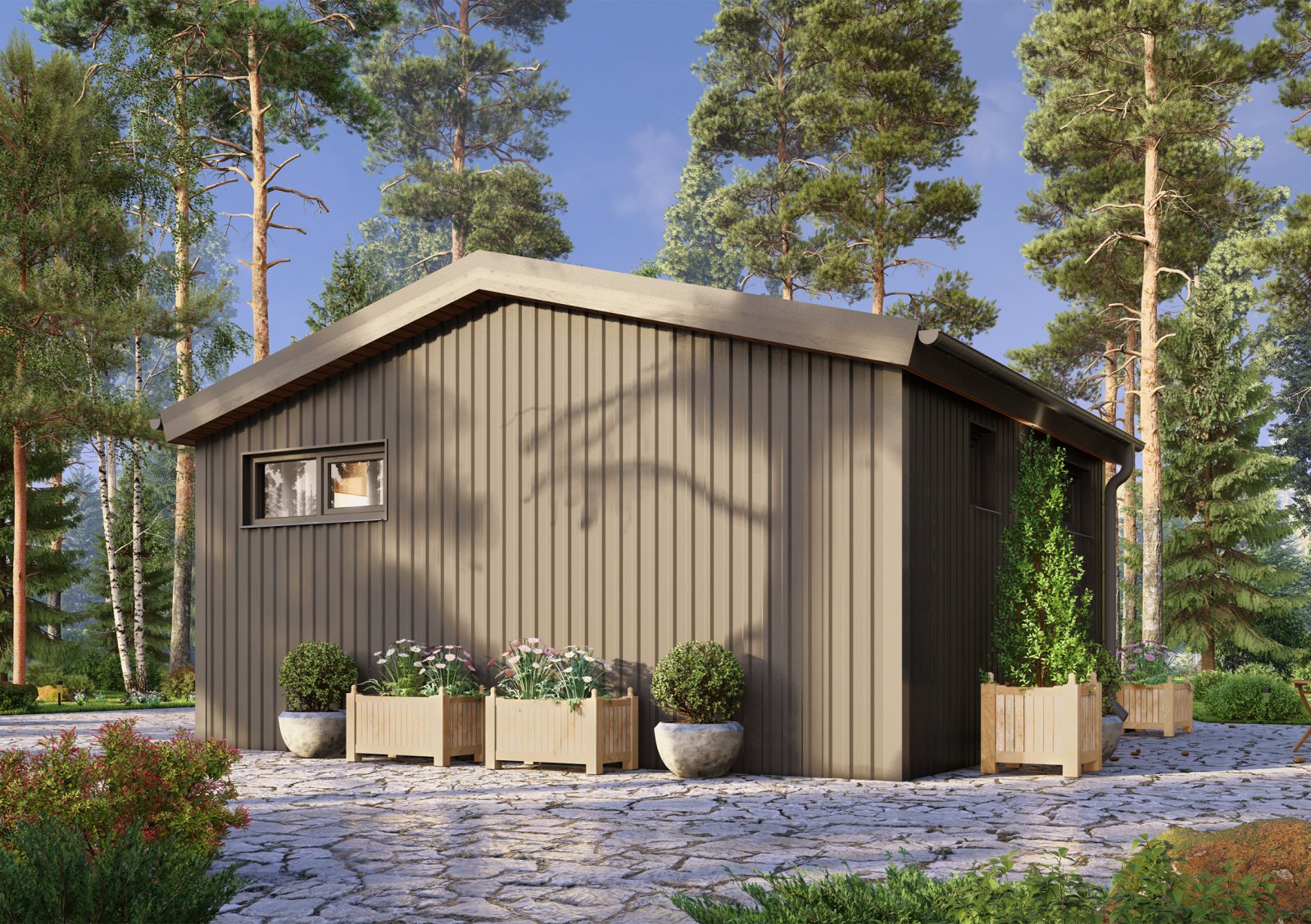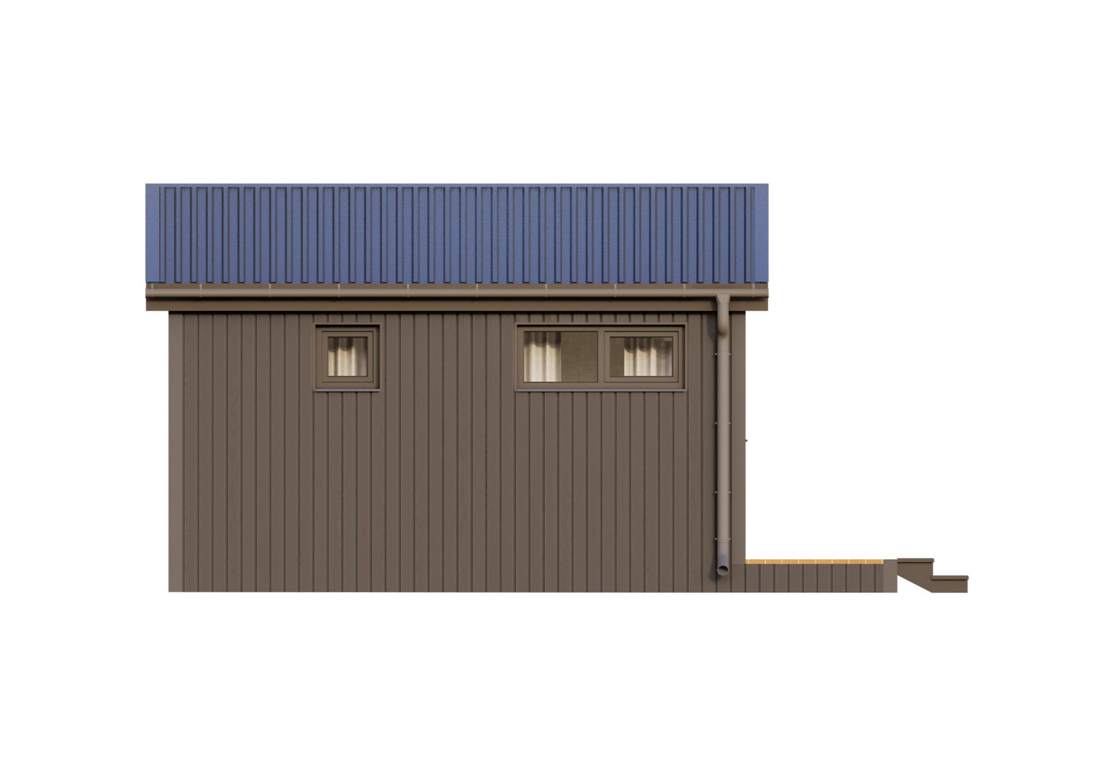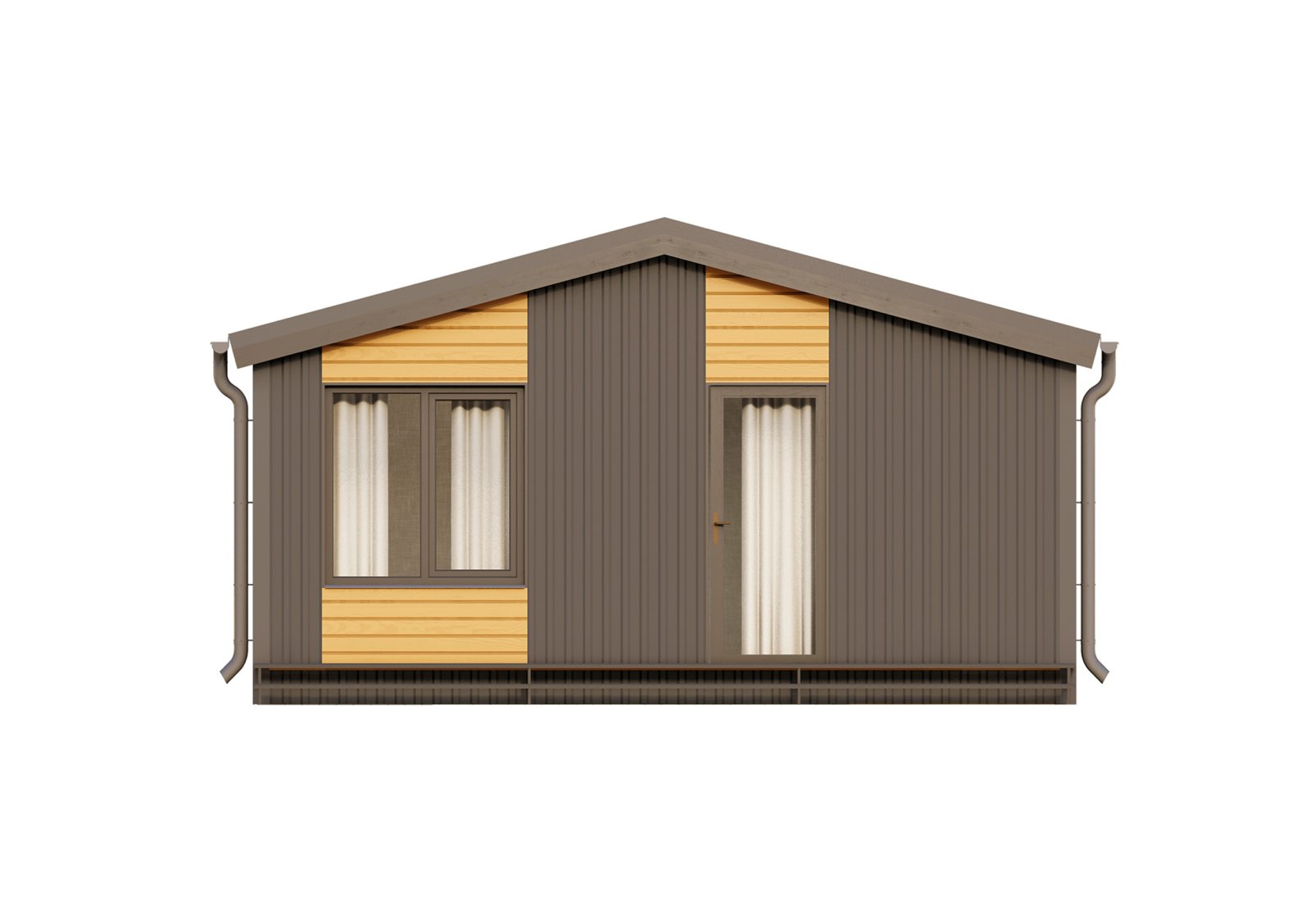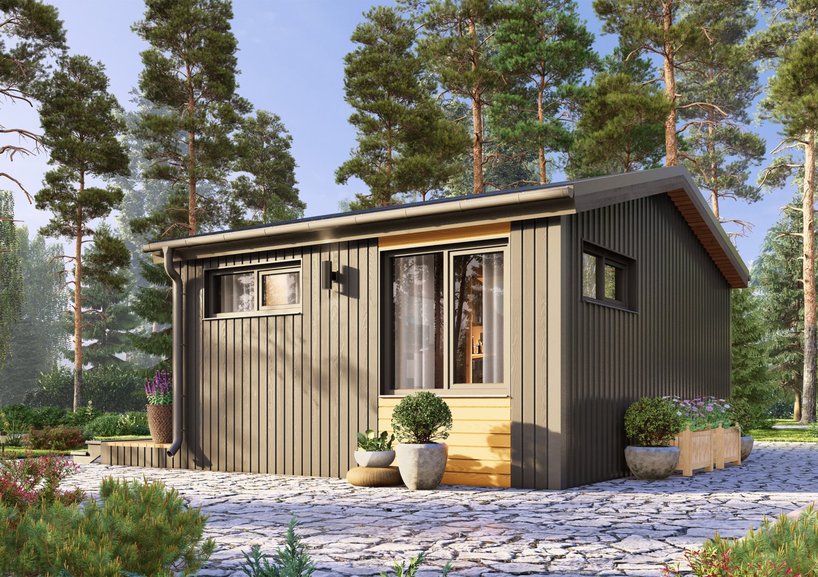 Глэмп 30+ - идеальный дачный дом – домик для отдыха. Небольших размеров, он при этом включает в себя всё, что необходимо для жизни. Кухня-гостиная 15,1 м2 вмещает в себя полноценную кухонную зону, отдельный обеденный стол и зону гостиной для отдыха. Отдельная спальня, площадью 5,8 м2, позволит в любой момент уединиться от всех. В санузле так же есть, всё что нужно для удобств. На площади 2,6 м2 расположена душевая кабина, унитаз и раковина с тумбой. Удобная открытая терраса позволит в любой момент выйти подышать свежим воздухом и выпить чашечку чая.