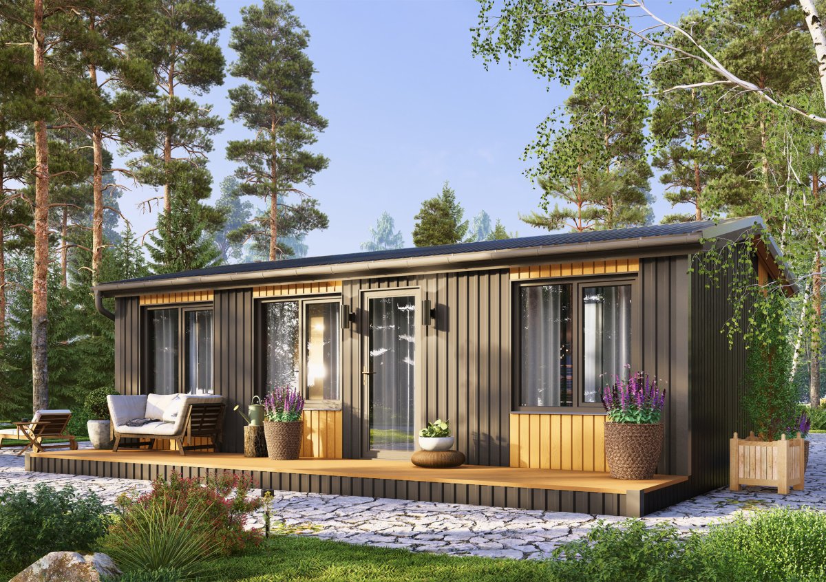 Фундамент: винтовые сваи с обвязкой брусом (в стоимость входит фундамент для участка без уклона).