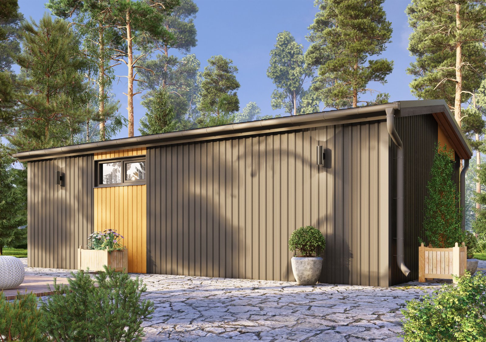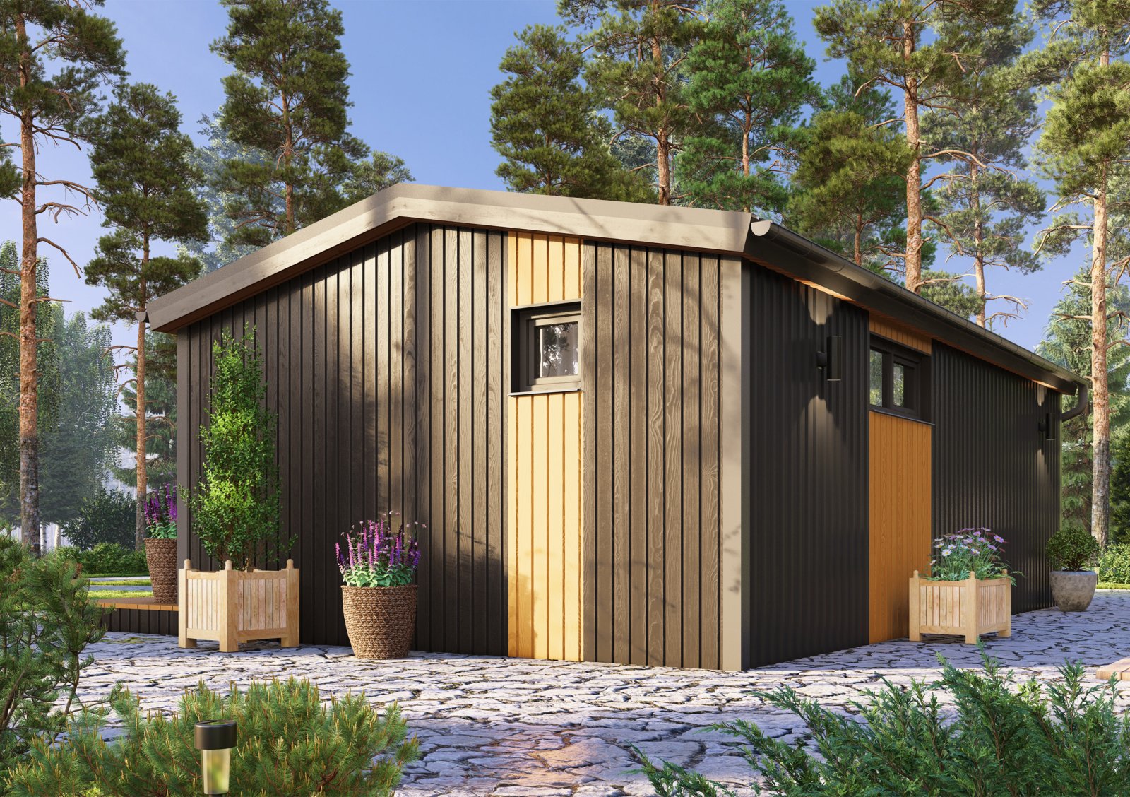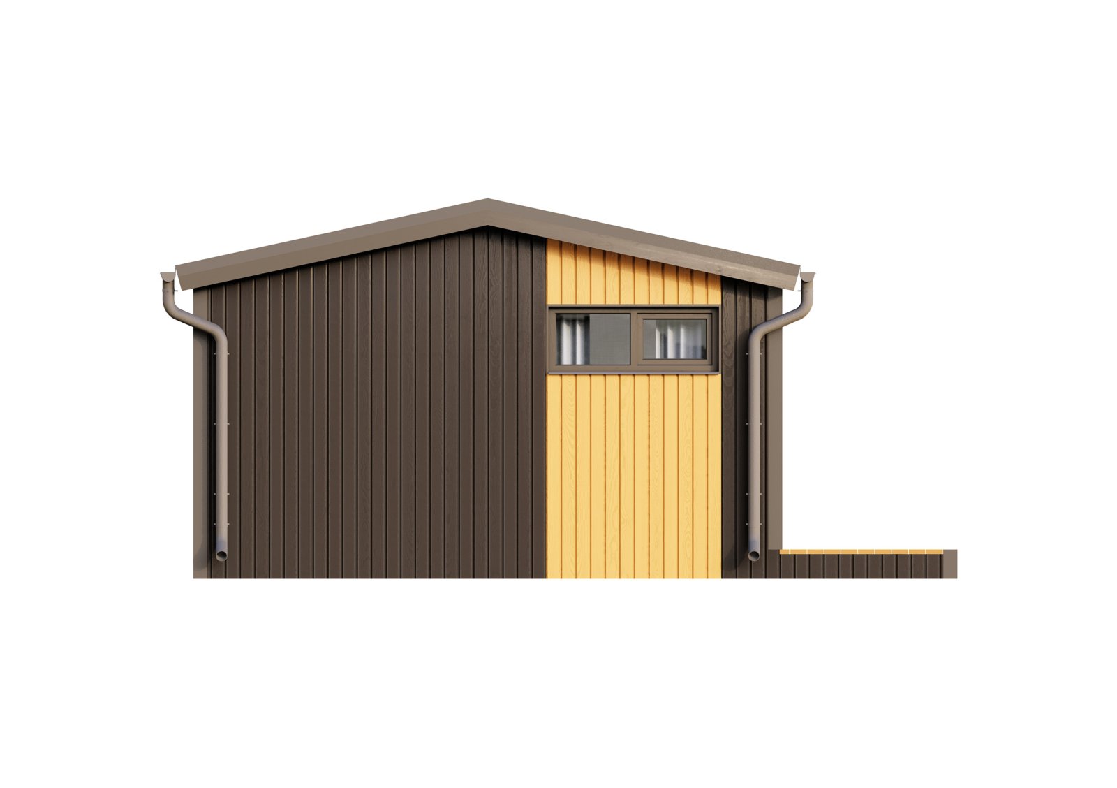 Отделка фасада комбинированная (профлист + сухая строганная доска с окрашиванием).