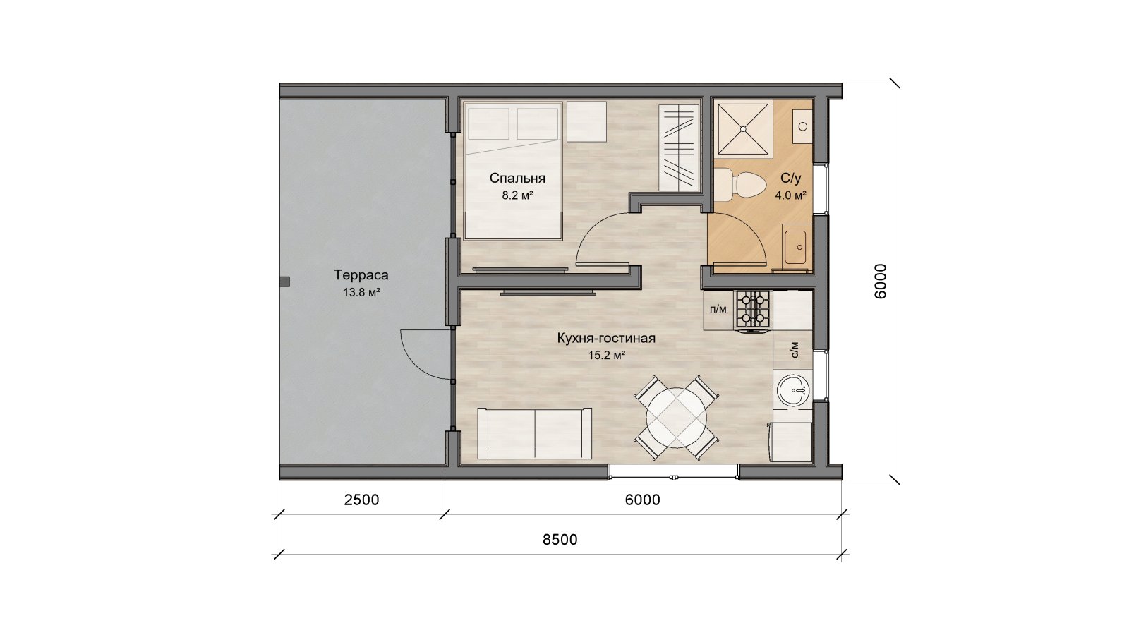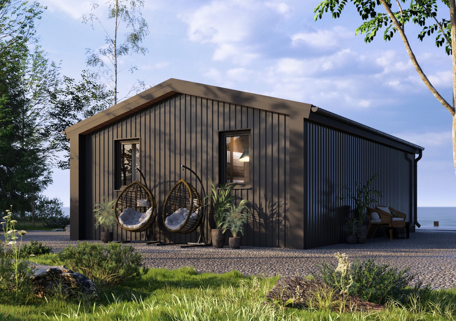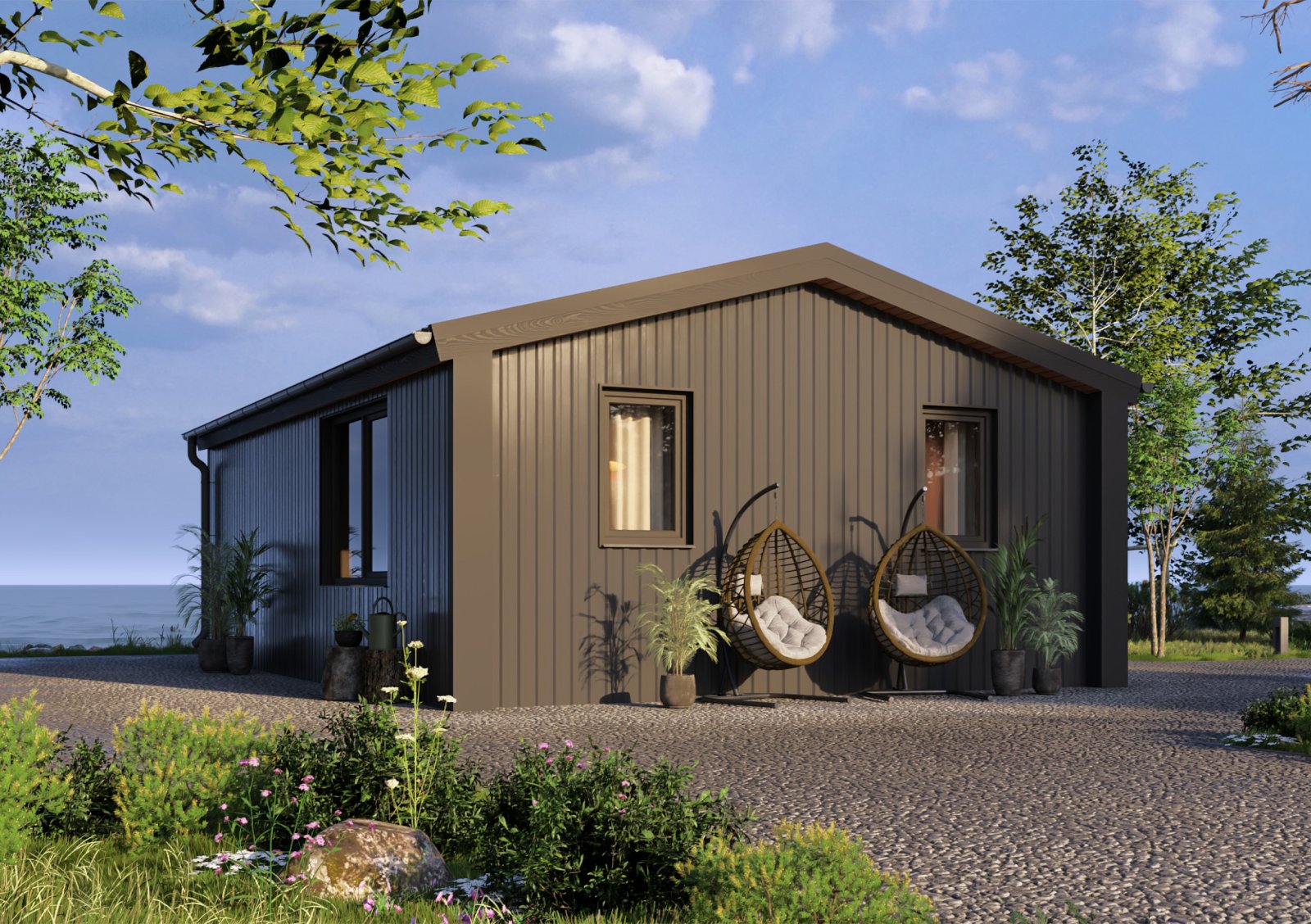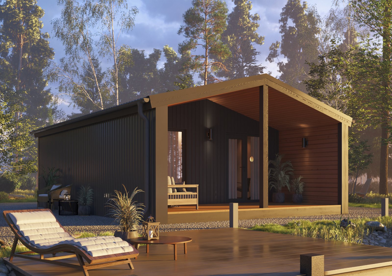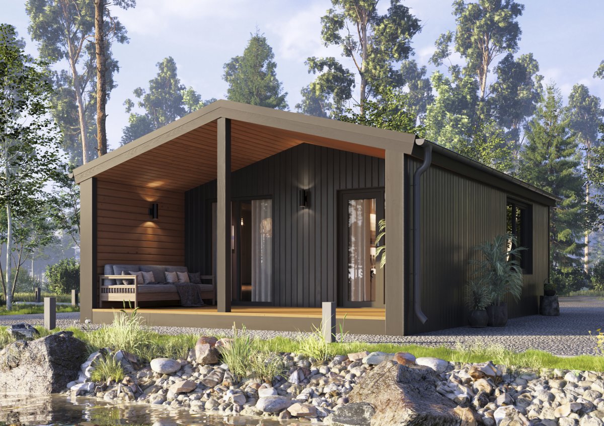 ТопДом 51 - новая разработка от компании «Ковчег». Дом состоит из нескольких эргономичных комнат. В кухне-гостиной площадью 15,2 м2, есть удобная кухонная зона, в которой поместиться всё для приготовления пищи, отдельностоящий обеденный стол отделяет зону готовки от приёма пищи. Зона гостиной позволит присесть и отдохнуть или комфортно встретить гостей. Так же имеется санузел со всеми удобствами площадью 4 м2. В нём есть душевая кабина, унитаз, раковина, водонагреватель – всё, что нужно для удобства. Полноценная спальня 8,2 м2 дает возможность разделить общественное и личное пространство. Большие витражные окна дают много солнечного света и соединяют пространство внутри и снаружи. Большая крытая терраса 13,8 м2 с глухими стенками защищает от ветра и осадков и позволяет проводить время на улице не зависимо от погодных условий.